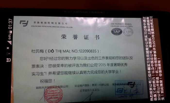 2015年度!我公司满足10位外国户籍大学生的实习任务!其后!经过她们自身的努力实习和工作,两位最优秀实习生获得大学四年级全额奖学金