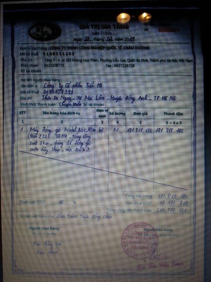 我公司又一国外分公司正式在他国工商部以及外汇进出和税务部门办理好各项手续!并顺利在他国接单合作!这是国外新公司开出的第一张增值税发票! 很有意思的是!销售额是200 000 000盾钱的货物!需要交的增值税刚好是:18 18 18 18盾钱!